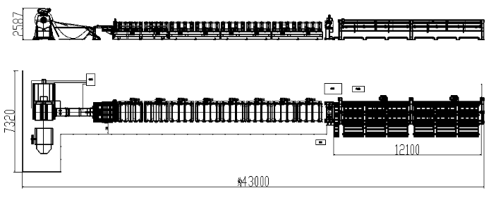 上料小車(chē)——開(kāi)卷機(jī)——輥壓成型機(jī)組——切斷——出料小車(chē)
